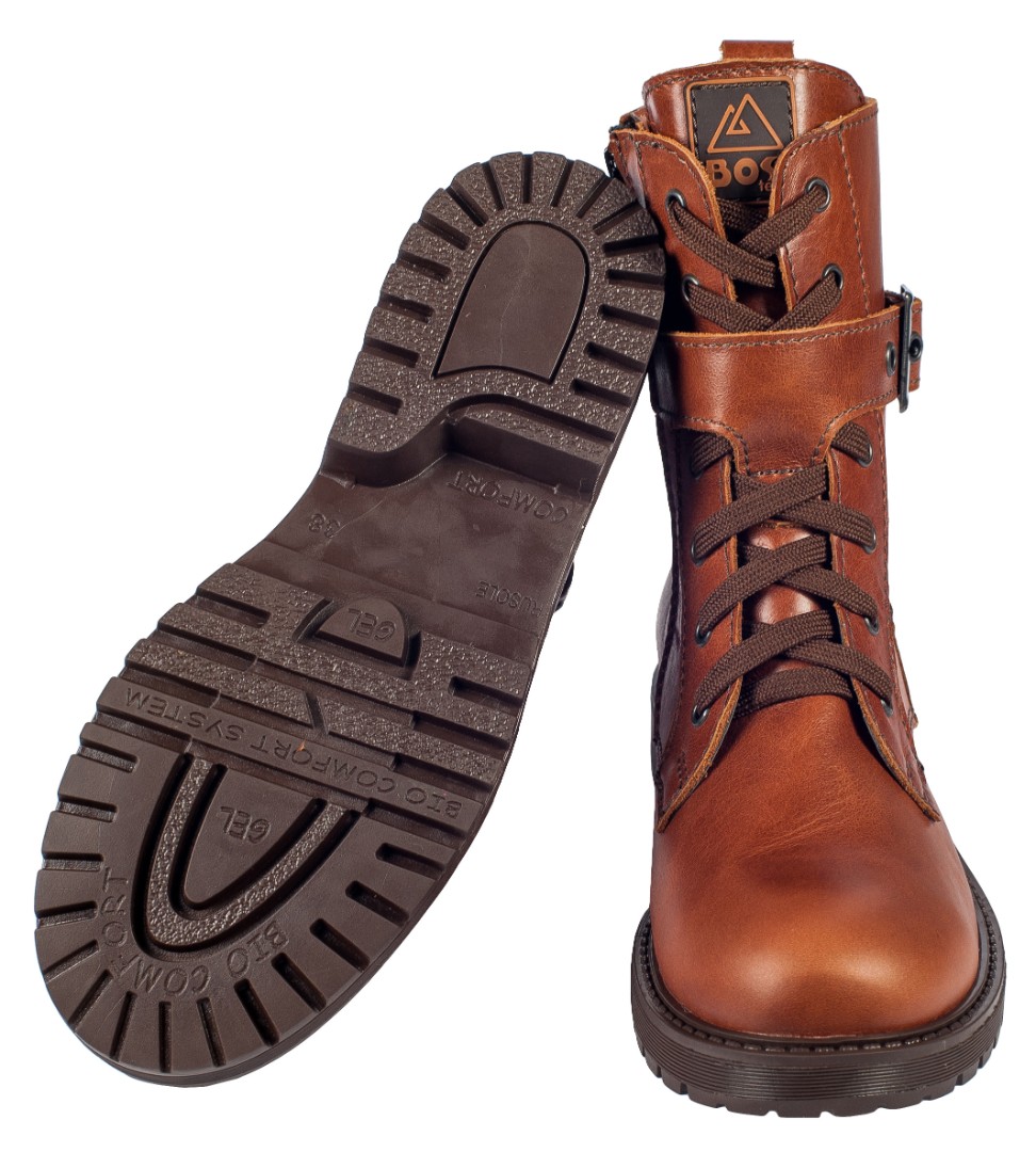 Купить стильные сапожки для мальчика из натуральной кожи на утеплении из байки предлагает фабрика BOS.