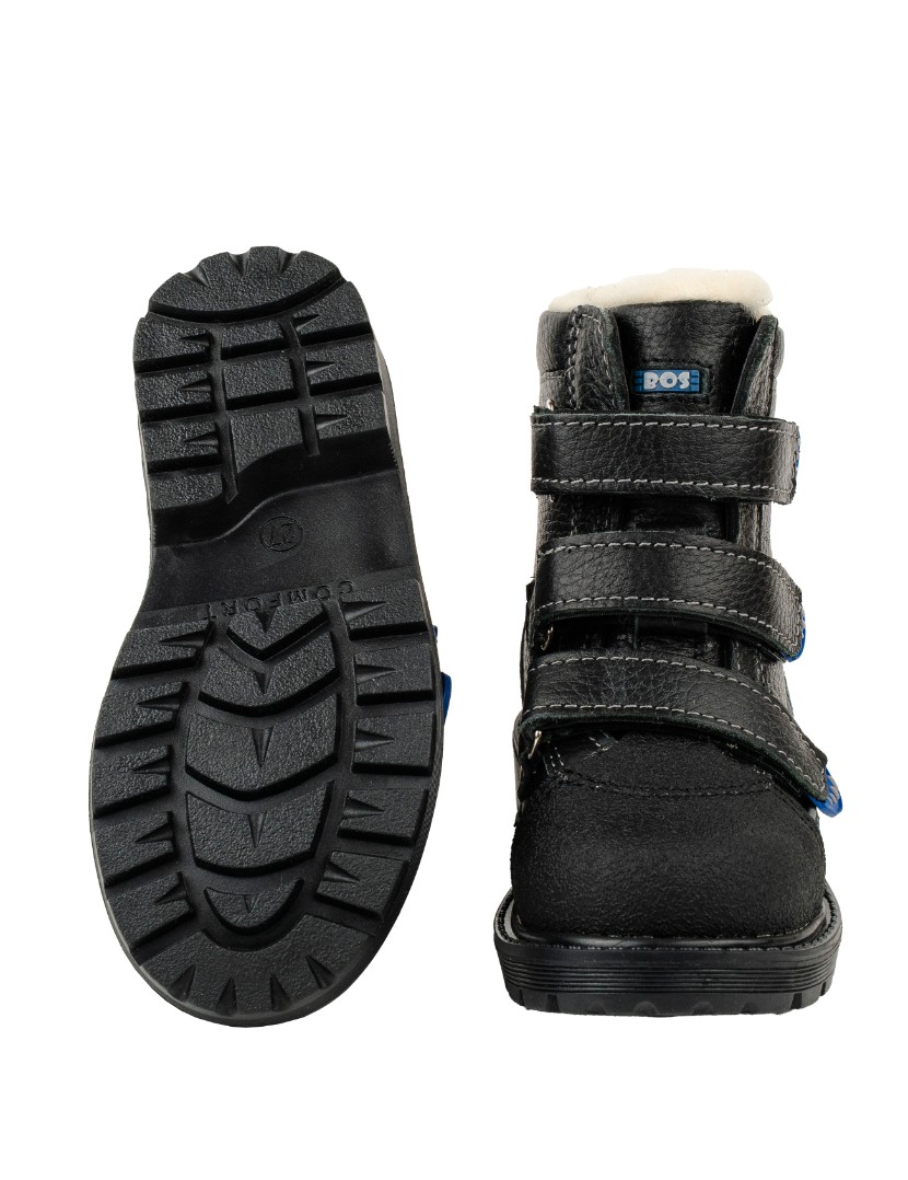 Утепленные ботинки  из натуральной кожи премиум-класса и подкладки из шерстяного меха, согреют ножки ребенка. При выборе модели с шерстяным мехом, за счет плотности меха, рекомендуем выбирать детскую обувь на 1-1,5 размера больше. Внутри - съёмная стелька с активным супинатором. Жесткий задник надежно фиксирует голеностоп, а липучка "Велкро" помогает регулировать полноту. Умерено эластичная и прочная подошва с каблуком Томаса не скользит и хорошо поглощает ударную нагрузку, что позволяет ножкам ребенка не уставать.