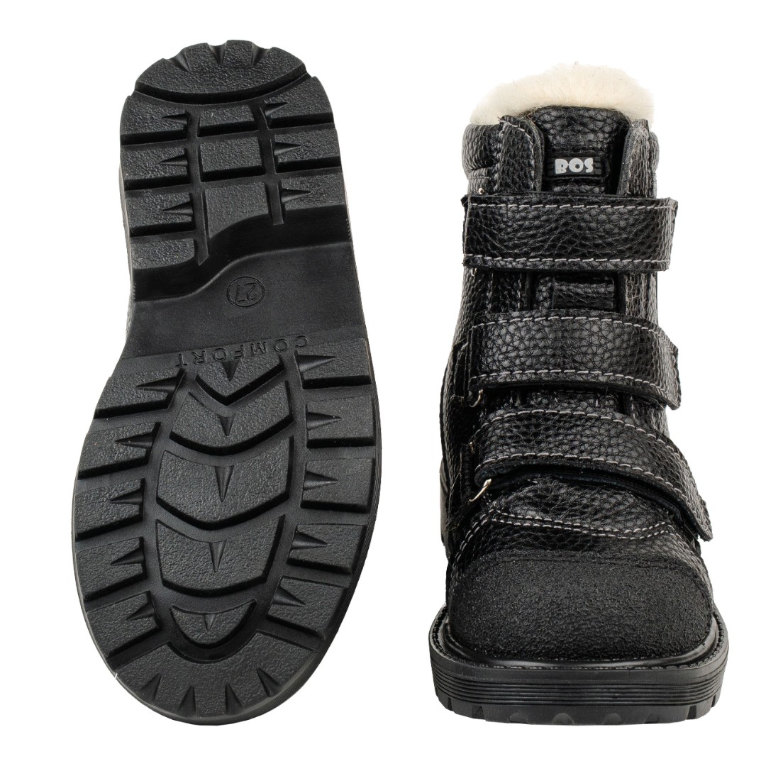 Утепленные ботинки из натуральной кожи премиум-класса и подкладки из шерстяного меха, согреют ножки ребенка. При выборе модели с шерстяным мехом, за счет плотности меха, рекомендуем выбирать детскую обувь на 1-1,5 размера больше. Внутри - съёмная стелька с активным супинатором. Жесткий задник надежно фиксирует голеностоп, а липучка "Велкро" помогает регулировать полноту. Умерено эластичная и прочная подошва с каблуком Томаса не скользит и хорошо поглощает ударную нагрузку, что позволяет ножкам ребенка не уставать.