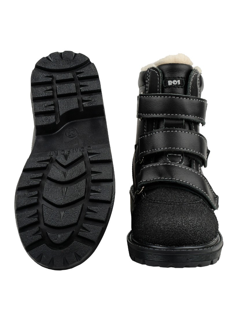 Утепленные ботинки  из натуральной кожи премиум-класса и подкладки из шерстяного меха, согреют ножки ребенка. При выборе модели с шерстяным мехом, за счет плотности меха, рекомендуем выбирать детскую обувь на 1-1,5 размера больше. Внутри - съёмная стелька с активным супинатором. Жесткий задник надежно фиксирует голеностоп, а липучка "Велкро" помогает регулировать полноту. Умерено эластичная и прочная подошва с каблуком Томаса не скользит и хорошо поглощает ударную нагрузку, что позволяет ножкам ребенка не уставать.