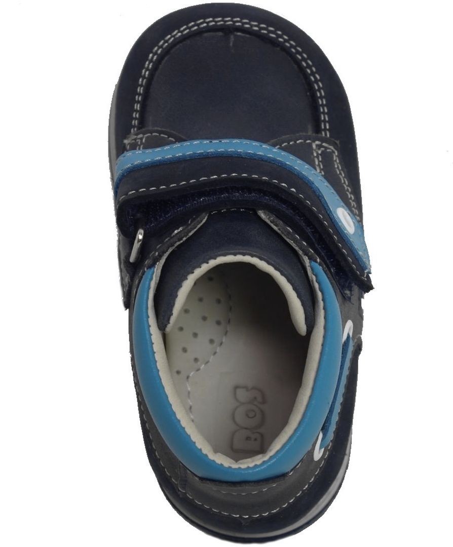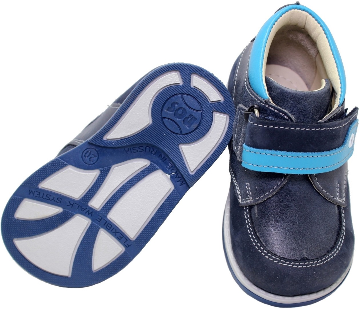 Купить практичные стильные мокасины для мальчика предлагает BOS, фабрика детской обуви. Модель из синей и голубой кожи.