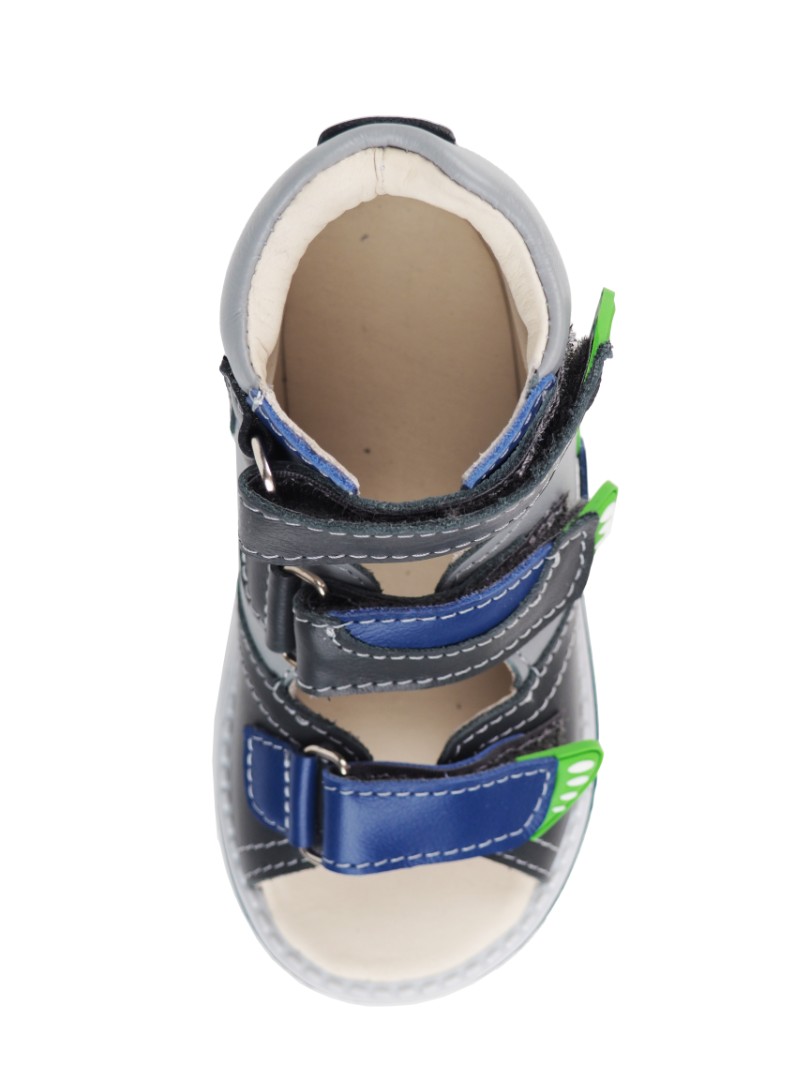 У вашего ребенка плоскостопие, плоско вальгусная постановка стопы или просто устают ножки при длительной ходьбе? Тогда наша ортопедическая обувь создана для вашего ребенка. Ортопедические сандалии из натуральной кожи премиум-класса внутри и снаружи, создадут комфорт ножкам вашего ребенка. Детские сандалии без супинатора, под индивидуальную стельку. Задник максимальной жесткости с удлиненным крылом надежно стабилизирует голеностопный сустав во время ходьбы. Упругая, умеренно-эластичная подошва, имеющая перекат, позволяет повторить естественное движение стопы при ходьбе для правильного распределения нагрузки на опорно-двигательный аппарат ребенка. Каблук Томаса - продлен с внутренней стороны до середины стопы, чтобы исключить заваливание стопы вовнутрь.