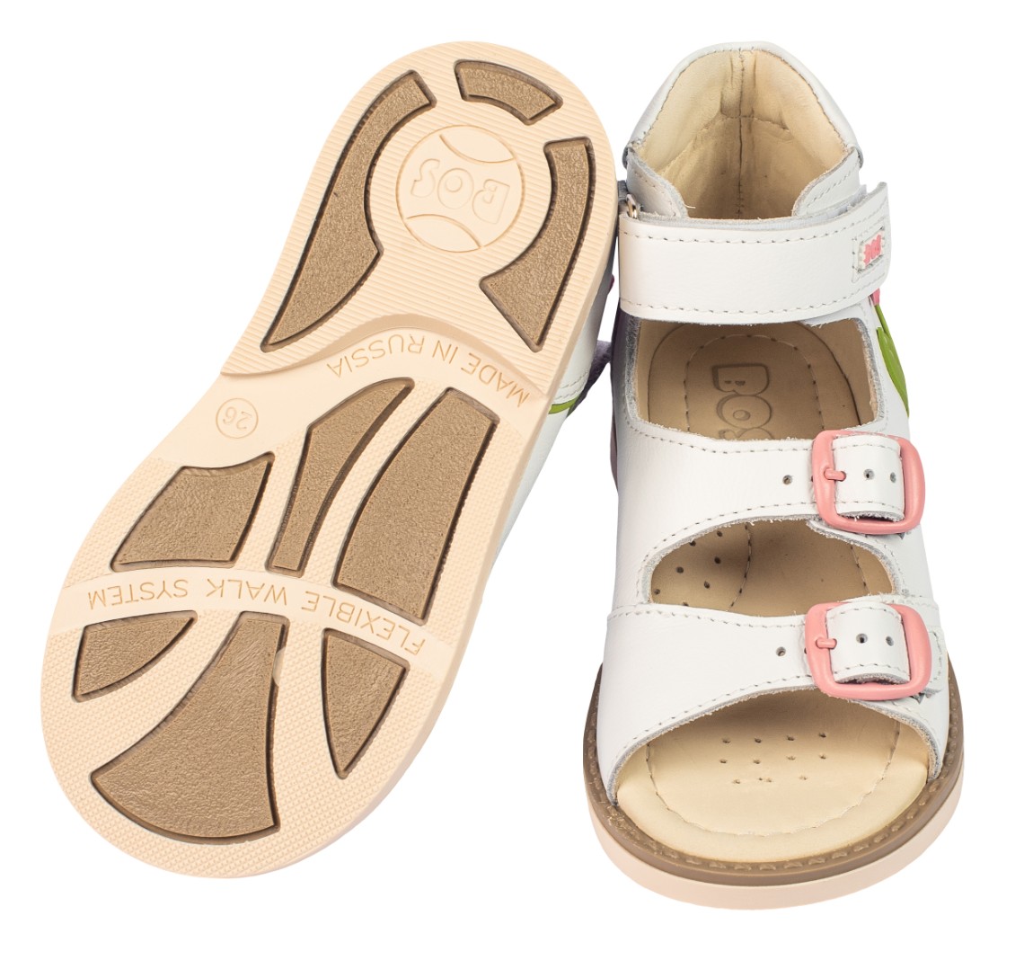 Ортопедические сандалии для профилактики и коррекции плоскостопия и плосковальгусной установки стоп. Широкий, устойчивый каблук специальной конфигурации - каблук Томаса. Каблук продлен с внутренней стороны до середины стопы, чтобы исключить заваливание стопы вовнутрь, так называемая косолапость, или вальгусная деформация. Анатомическая стелька с супинатором для правильного формирования свода стопы. Задник максимальной жесткости с удлиненным крылом надежно стабилизирует голеностопный сустав во время ходьбы. Упругая, умеренно-эластичная подошва, имеющая перекат, позволяет повторить естественное движение стопы при ходьбе для правильного распределения нагрузки на опорно-двигательный аппарат ребенка.