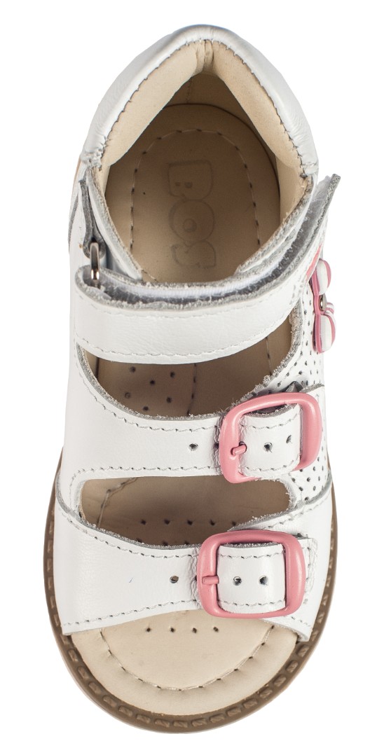 Ортопедические сандалии для профилактики и коррекции плоскостопия и плосковальгусной установки стоп. Широкий, устойчивый каблук специальной конфигурации - каблук Томаса. Каблук продлен с внутренней стороны до середины стопы, чтобы исключить заваливание стопы вовнутрь, так называемая косолапость, или вальгусная деформация. Анатомическая стелька с супинатором для правильного формирования свода стопы. Задник максимальной жесткости с удлиненным крылом надежно стабилизирует голеностопный сустав во время ходьбы. Упругая, умеренно-эластичная подошва, имеющая перекат, позволяет повторить естественное движение стопы при ходьбе для правильного распределения нагрузки на опорно-двигательный аппарат ребенка.