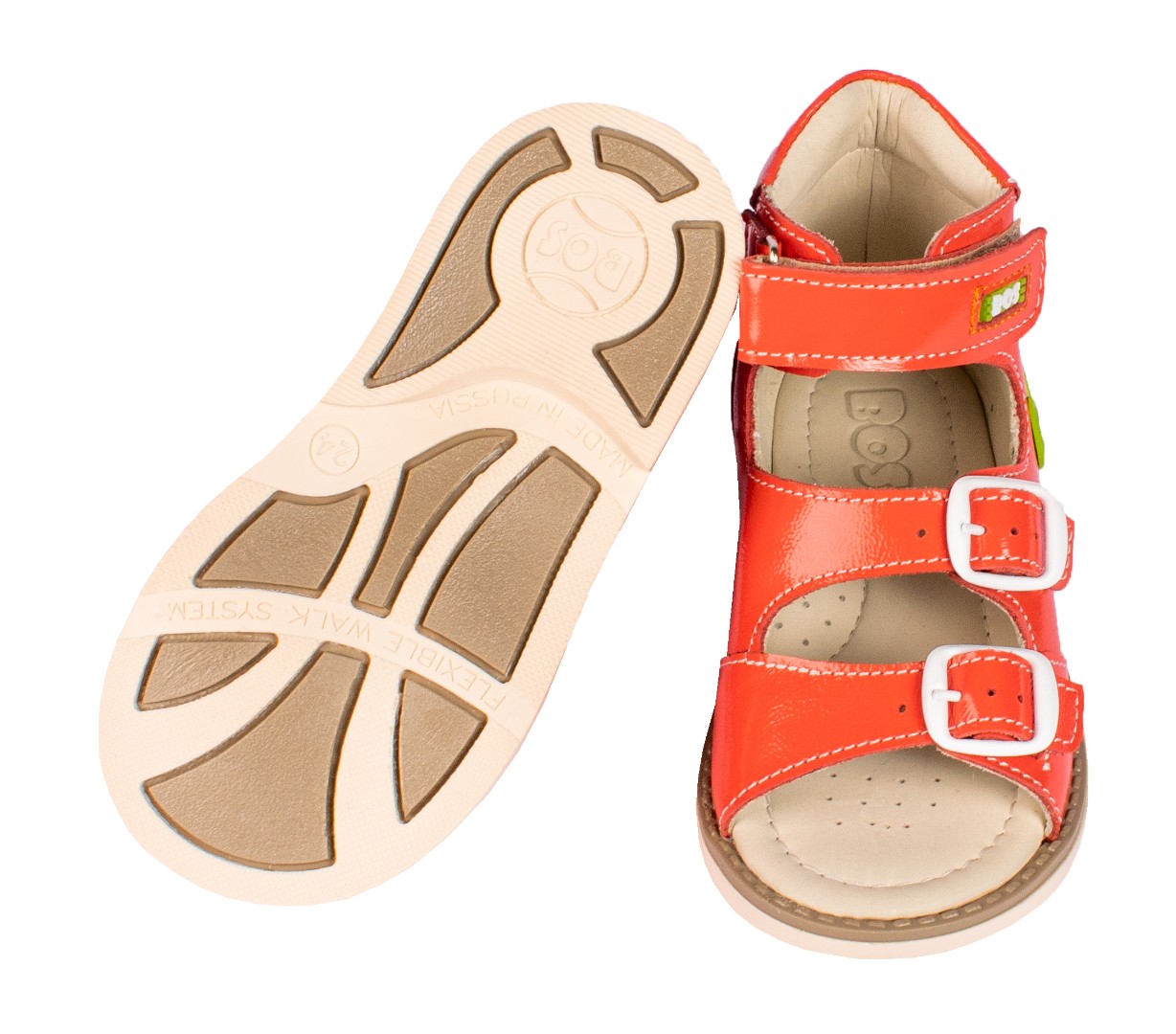 Ортопедические сандалии для профилактики и коррекции плоскостопия и плосковальгусной установки стоп. Широкий, устойчивый каблук специальной конфигурации - каблук Томаса. Каблук продлен с внутренней стороны до середины стопы, чтобы исключить заваливание стопы вовнутрь, так называемая косолапость, или вальгусная деформация. Анатомическая стелька с супинатором для правильного формирования свода стопы. Задник максимальной жесткости с удлиненным крылом надежно стабилизирует голеностопный сустав во время ходьбы. Упругая, умеренно-эластичная подошва, имеющая перекат, позволяет повторить естественное движение стопы при ходьбе для правильного распределения нагрузки на опорно-двигательный аппарат ребенка.