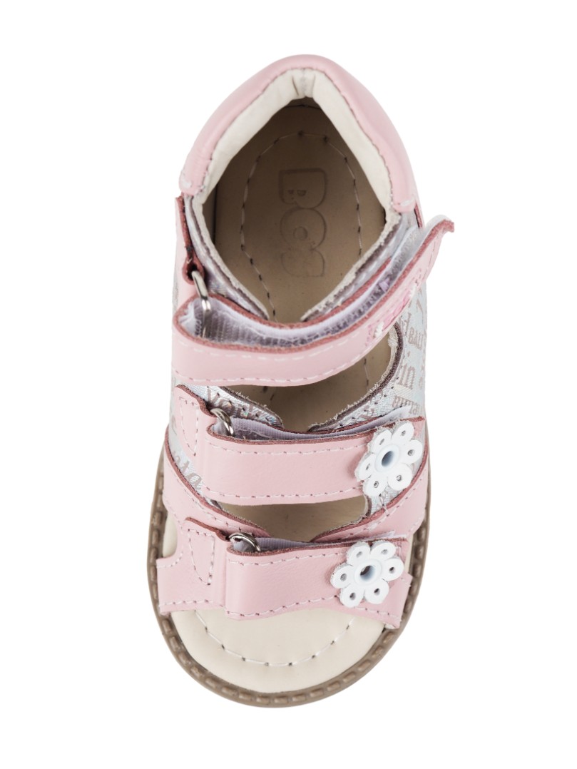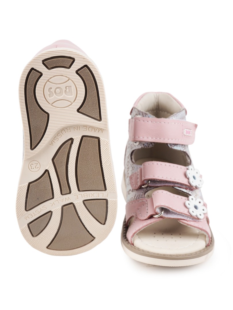 Ортопедические сандалии для профилактики и коррекции плоскостопия и плосковальгусной установки стоп. Широкий, устойчивый каблук специальной конфигурации - каблук Томаса. Каблук продлен с внутренней стороны до середины стопы, чтобы исключить заваливание стопы вовнутрь, так называемая косолапость, или вальгусная деформация. Анатомическая стелька с супинатором для правильного формирования свода стопы. Задник максимальной жесткости с удлиненным крылом надежно стабилизирует голеностопный сустав во время ходьбы. Упругая, умеренно-эластичная подошва, имеющая перекат, позволяет повторить естественное движение стопы при ходьбе для правильного распределения нагрузки на опорно-двигательный аппарат ребенка.
