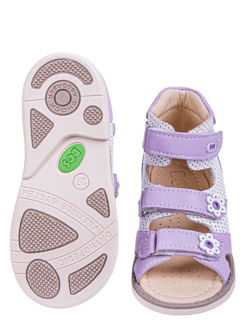 Ортопедические сандалии для профилактики и коррекции плоскостопия и плосковальгусной установки стоп. Широкий, устойчивый каблук специальной конфигурации - каблук Томаса. Каблук продлен с внутренней стороны до середины стопы, чтобы исключить заваливание стопы вовнутрь, так называемая косолапость, или вальгусная деформация. Анатомическая стелька с супинатором для правильного формирования свода стопы. Задник максимальной жесткости с удлиненным крылом надежно стабилизирует голеностопный сустав во время ходьбы. Упругая, умеренно-эластичная подошва, имеющая перекат, позволяет повторить естественное движение стопы при ходьбе для правильного распределения нагрузки на опорно-двигательный аппарат ребенка.