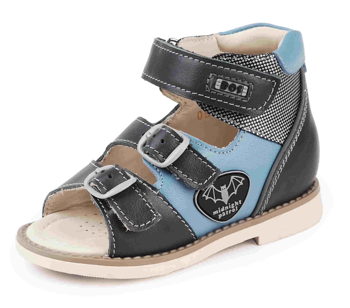 Сандалии для профилактики плоскостопия и плосковальгусной установки стоп. Широкий, устойчивый каблук специальной конфигурации - каблук Томаса. Каблук продлен с внутренней стороны до середины стопы, чтобы исключить заваливание стопы вовнутрь, так называемая косолапость, или вальгусная деформация. Анатомическая стелька с супинатором для правильного формирования свода стопы. Задник максимальной жесткости с удлиненным крылом надежно стабилизирует голеностопный сустав во время ходьбы. Упругая, умеренно-эластичная подошва, имеющая перекат, позволяет повторить естественное движение стопы при ходьбе для правильного распределения нагрузки на опорно-двигательный аппарат ребенка.