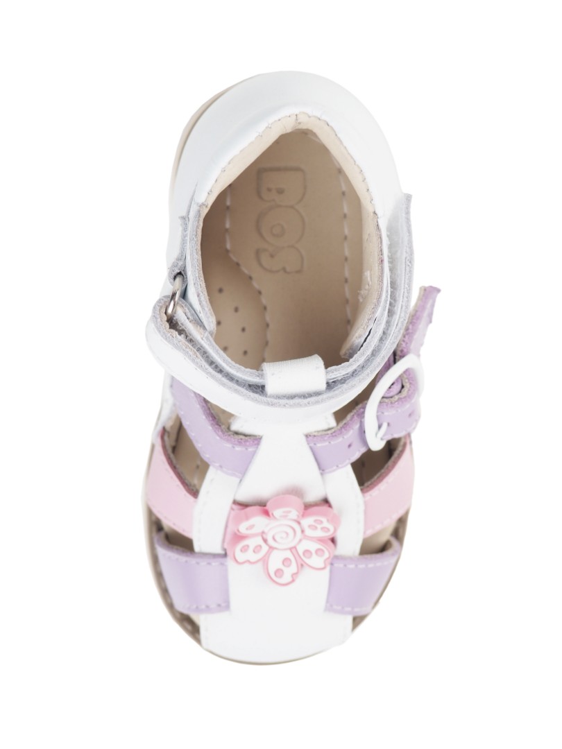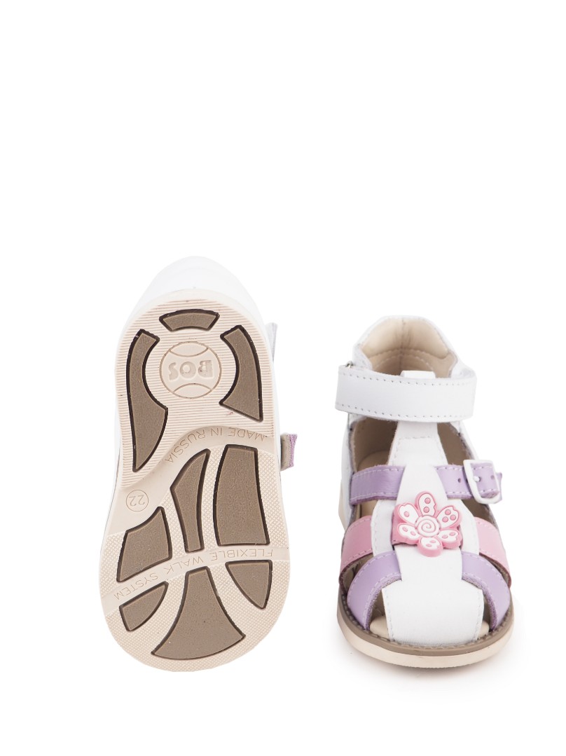 Ортопедические сандалии для профилактики и коррекции плоскостопия и плосковальгусной установки стоп. Широкий, устойчивый каблук специальной конфигурации - каблук Томаса. Каблук продлен с внутренней стороны до середины стопы, чтобы исключить заваливание стопы вовнутрь, так называемая косолапость, или вальгусная деформация. Анатомическая стелька с супинатором для правильного формирования свода стопы. Задник максимальной жесткости с удлиненным крылом надежно стабилизирует голеностопный сустав во время ходьбы. Упругая, умеренно-эластичная подошва, имеющая перекат, позволяет повторить естественное движение стопы при ходьбе для правильного распределения нагрузки на опорно-двигательный аппарат ребенка.