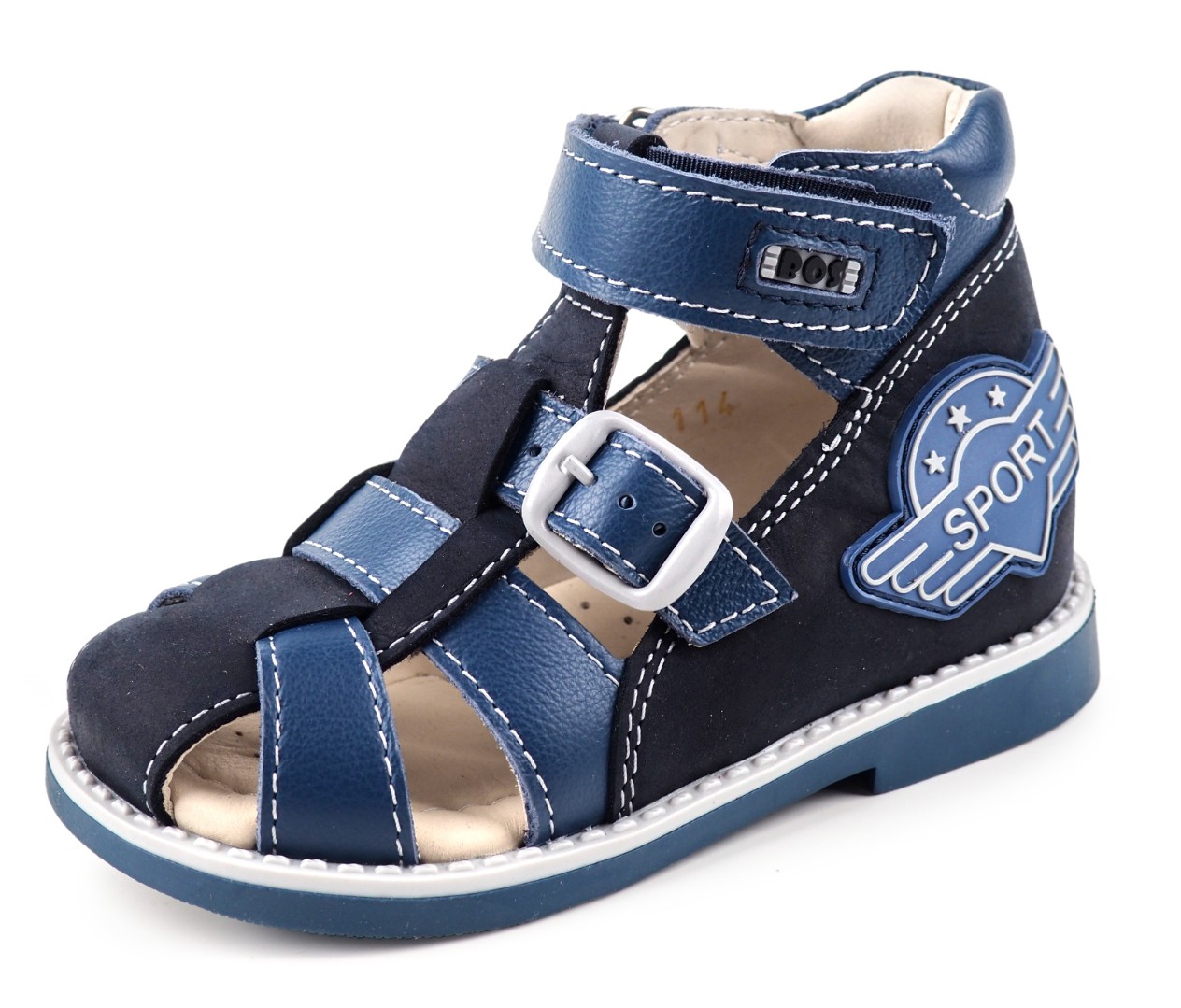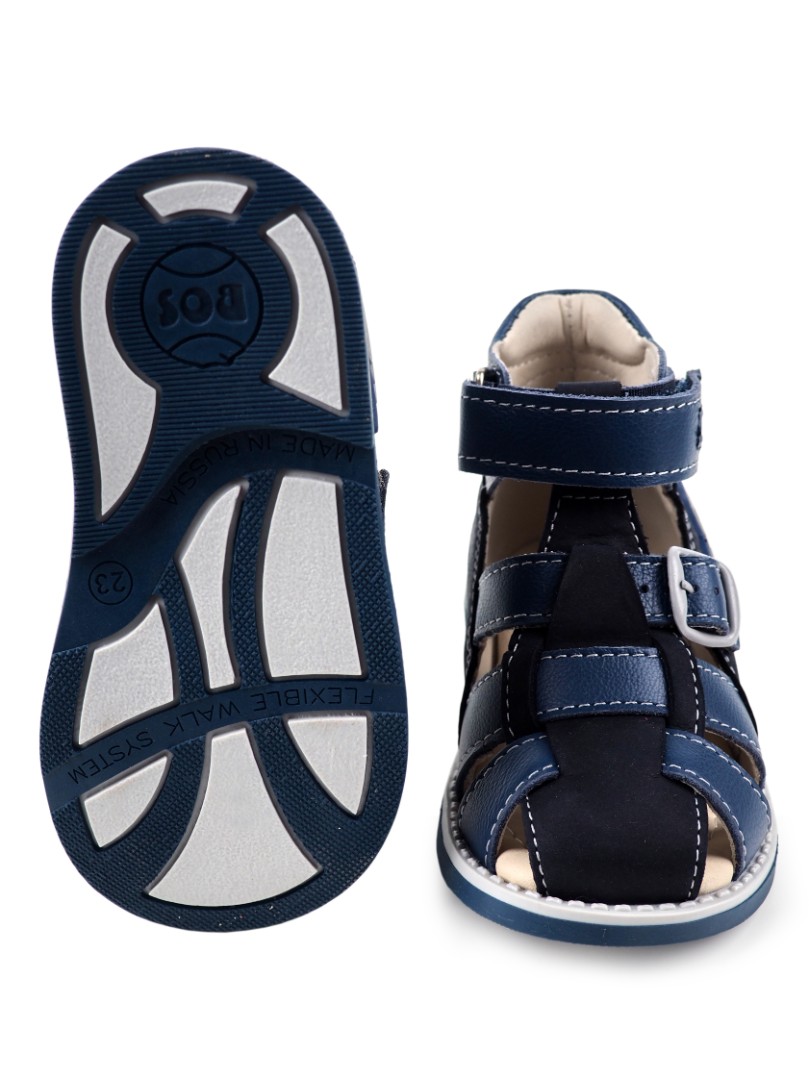 Сандалии для профилактики плоскостопия и плосковальгусной установки стоп. Широкий, устойчивый каблук специальной конфигурации - каблук Томаса. Каблук продлен с внутренней стороны до середины стопы, чтобы исключить заваливание стопы вовнутрь, так называемая косолапость, или вальгусная деформация. Анатомическая стелька с супинатором для правильного формирования свода стопы. Задник максимальной жесткости с удлиненным крылом надежно стабилизирует голеностопный сустав во время ходьбы. Упругая, умеренно-эластичная подошва, имеющая перекат, позволяет повторить естественное движение стопы при ходьбе для правильного распределения нагрузки на опорно-двигательный аппарат ребенка.