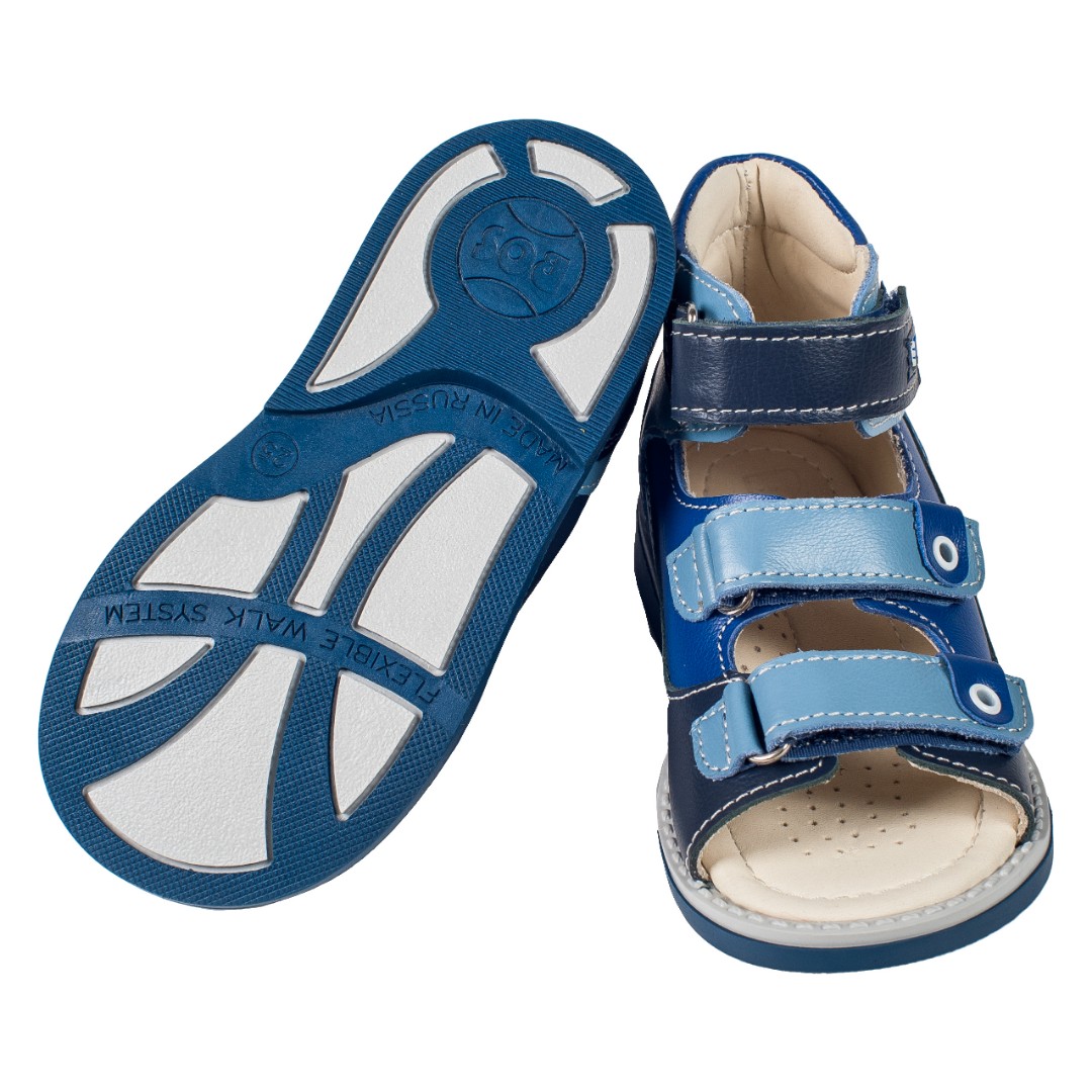 Сандалии для профилактики плоскостопия и плосковальгусной установки стоп. Широкий, устойчивый каблук специальной конфигурации - каблук Томаса. Каблук продлен с внутренней стороны до середины стопы, чтобы исключить заваливание стопы вовнутрь, так называемая косолапость, или вальгусная деформация. Анатомическая стелька с супинатором для правильного формирования свода стопы. Задник максимальной жесткости с удлиненным крылом надежно стабилизирует голеностопный сустав во время ходьбы. Упругая, умеренно-эластичная подошва, имеющая перекат, позволяет повторить естественное движение стопы при ходьбе для правильного распределения нагрузки на опорно-двигательный аппарат ребенка.