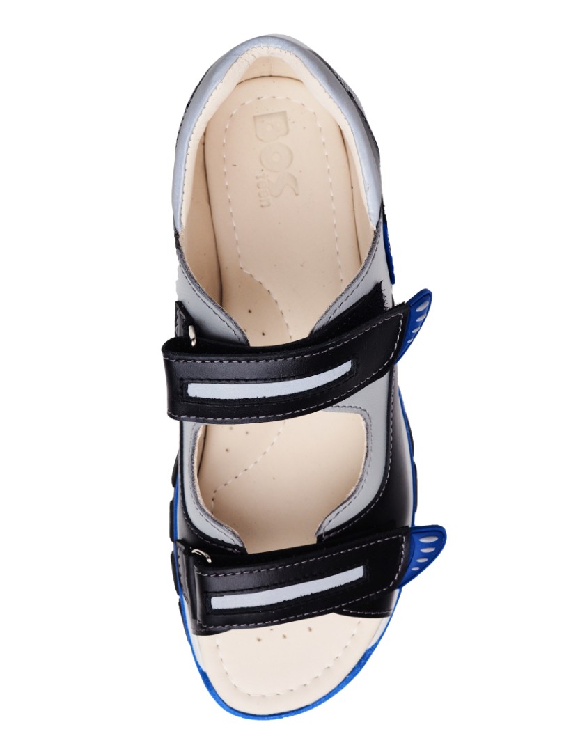 Сандалии для профилактики плоскостопия и плосковальгусной установки стоп. Анатомическая стелька с супинатором для правильного формирования свода стопы. Задник максимальной жесткости с удлиненным крылом надежно стабилизирует голеностопный сустав во время ходьбы. Упругая, умеренно-эластичная подошва, имеющая перекат, позволяет повторить естественное движение стопы при ходьбе для правильного распределения нагрузки на опорно-двигательный аппарат ребенка.
