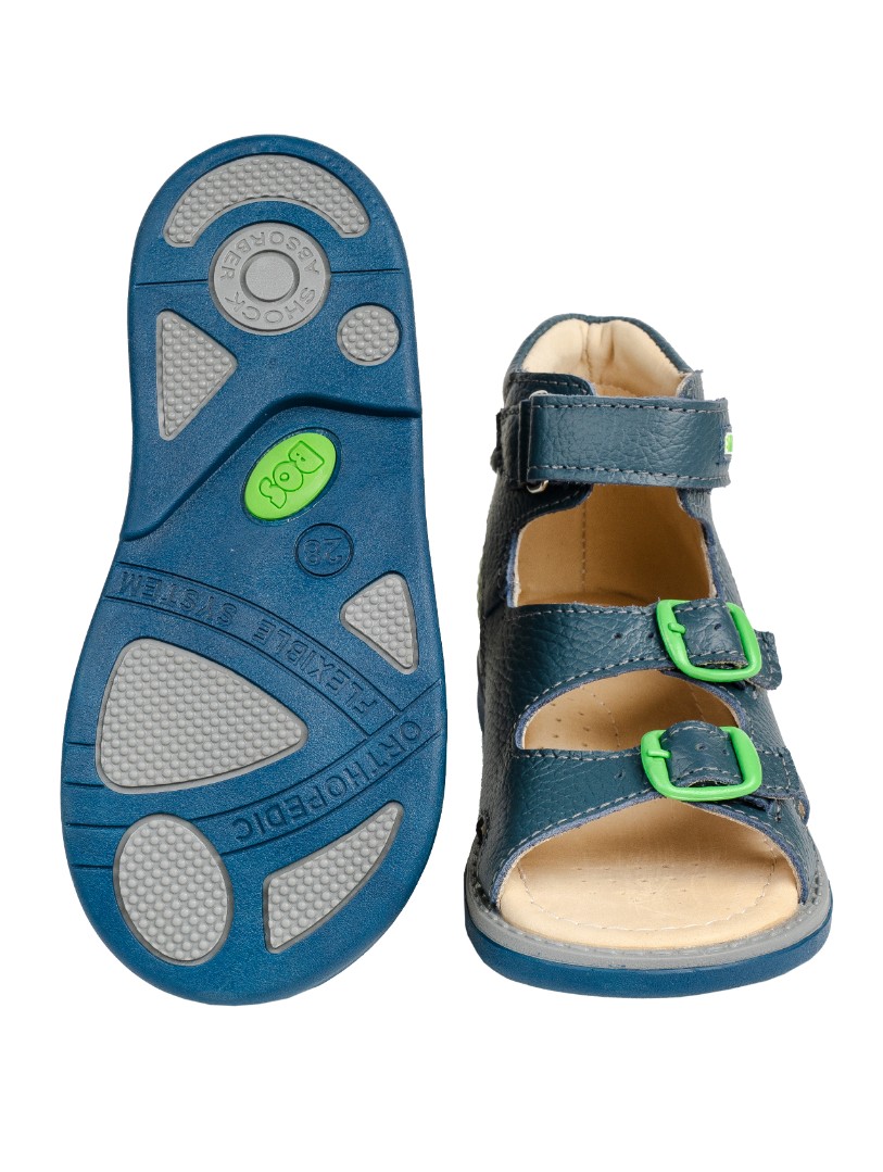 Сандалии для профилактики плоскостопия и плосковальгусной установки стоп. Широкий, устойчивый каблук специальной конфигурации - каблук Томаса. Каблук продлен с внутренней стороны до середины стопы, чтобы исключить заваливание стопы вовнутрь, так называемая косолапость, или вальгусная деформация. Анатомическая стелька с супинатором для правильного формирования свода стопы. Задник максимальной жесткости с удлиненным крылом надежно стабилизирует голеностопный сустав во время ходьбы. Упругая, умеренно-эластичная подошва, имеющая перекат, позволяет повторить естественное движение стопы при ходьбе для правильного распределения нагрузки на опорно-двигательный аппарат ребенка.