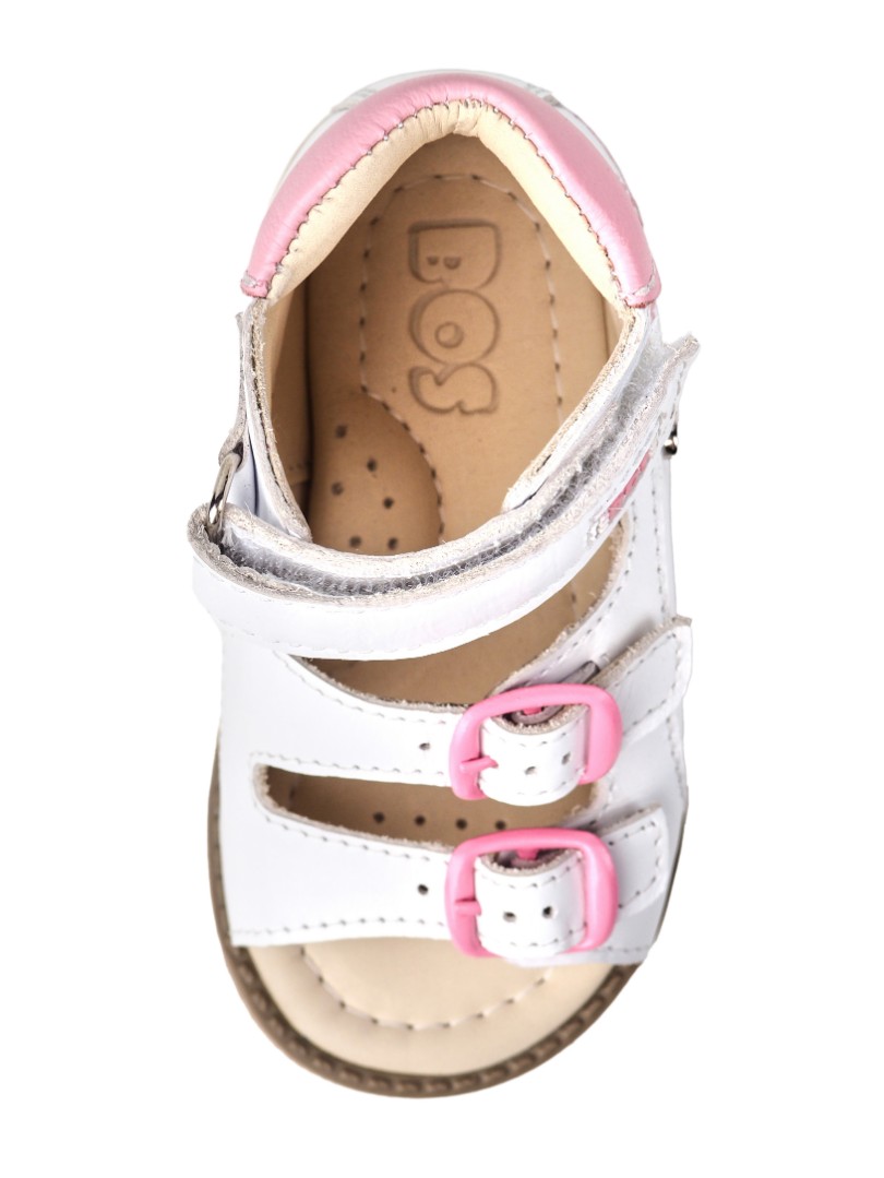 Ортопедические сандалии для профилактики и коррекции плоскостопия и плосковальгусной установки стоп. Широкий, устойчивый каблук специальной конфигурации - каблук Томаса. Каблук продлен с внутренней стороны до середины стопы, чтобы исключить заваливание стопы вовнутрь, так называемая косолапость, или вальгусная деформация. Анатомическая стелька с супинатором для правильного формирования свода стопы. Задник максимальной жесткости с удлиненным крылом надежно стабилизирует голеностопный сустав во время ходьбы. Упругая, умеренно-эластичная подошва, имеющая перекат, позволяет повторить естественное движение стопы при ходьбе для правильного распределения нагрузки на опорно-двигательный аппарат ребенка.