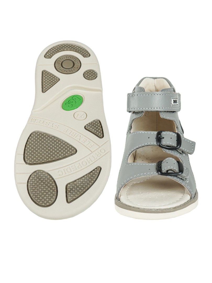 Сандалии для профилактики плоскостопия и плосковальгусной установки стоп. Широкий, устойчивый каблук специальной конфигурации - каблук Томаса. Каблук продлен с внутренней стороны до середины стопы, чтобы исключить заваливание стопы вовнутрь, так называемая косолапость, или вальгусная деформация. Анатомическая стелька с супинатором для правильного формирования свода стопы. Задник максимальной жесткости с удлиненным крылом надежно стабилизирует голеностопный сустав во время ходьбы. Упругая, умеренно-эластичная подошва, имеющая перекат, позволяет повторить естественное движение стопы при ходьбе для правильного распределения нагрузки на опорно-двигательный аппарат ребенка.