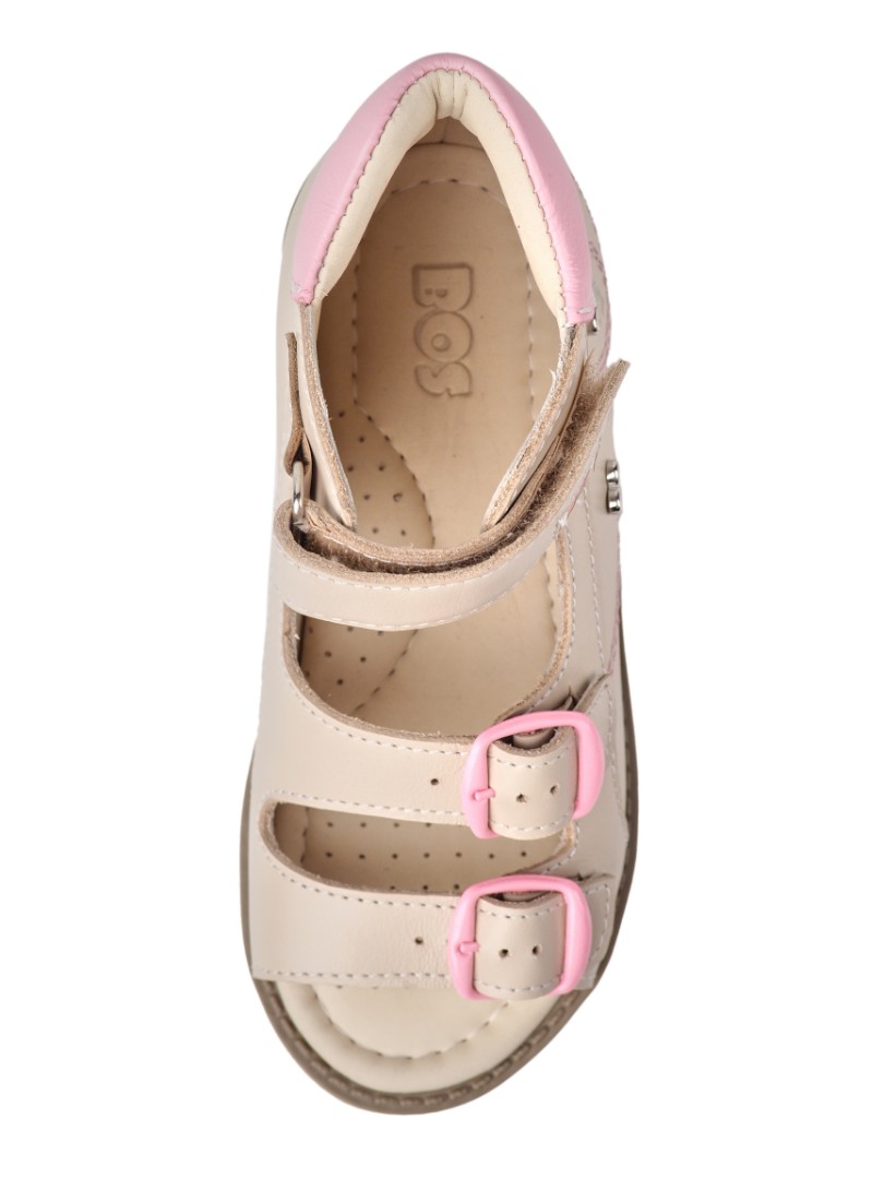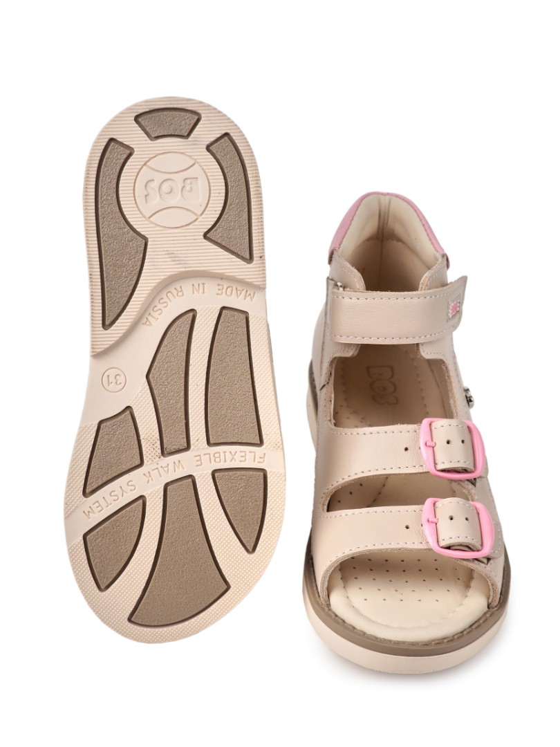 Ортопедические сандалии для профилактики и коррекции плоскостопия и плосковальгусной установки стоп. Широкий, устойчивый каблук специальной конфигурации - каблук Томаса. Каблук продлен с внутренней стороны до середины стопы, чтобы исключить заваливание стопы вовнутрь, так называемая косолапость, или вальгусная деформация. Анатомическая стелька с супинатором для правильного формирования свода стопы. Задник максимальной жесткости с удлиненным крылом надежно стабилизирует голеностопный сустав во время ходьбы. Упругая, умеренно-эластичная подошва, имеющая перекат, позволяет повторить естественное движение стопы при ходьбе для правильного распределения нагрузки на опорно-двигательный аппарат ребенка.
