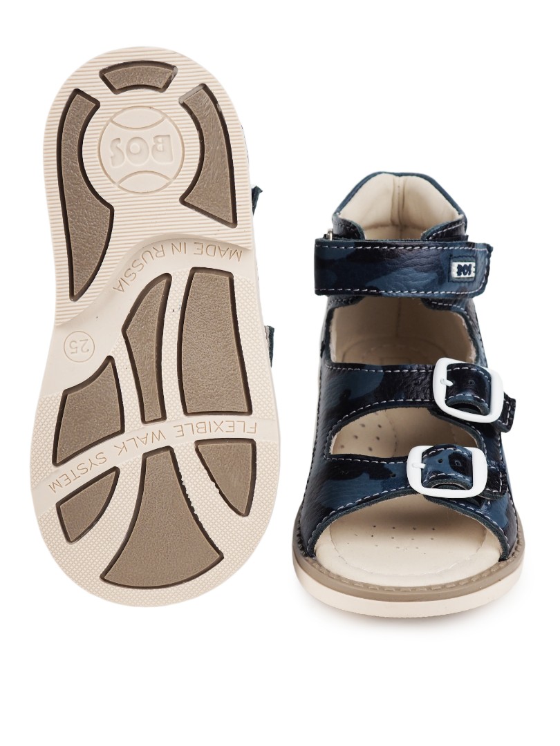 Сандалии для профилактики плоскостопия и плосковальгусной установки стоп. Широкий, устойчивый каблук специальной конфигурации - каблук Томаса. Каблук продлен с внутренней стороны до середины стопы, чтобы исключить заваливание стопы вовнутрь, так называемая косолапость, или вальгусная деформация. Анатомическая стелька с супинатором для правильного формирования свода стопы. Задник максимальной жесткости с удлиненным крылом надежно стабилизирует голеностопный сустав во время ходьбы. Упругая, умеренно-эластичная подошва, имеющая перекат, позволяет повторить естественное движение стопы при ходьбе для правильного распределения нагрузки на опорно-двигательный аппарат ребенка.