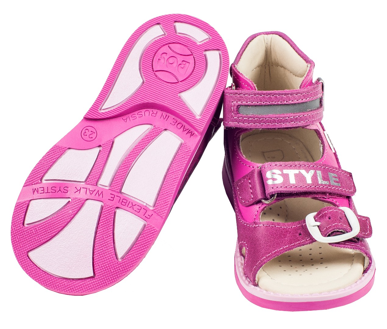 Ортопедические сандалии для профилактики и коррекции плоскостопия и плосковальгусной установки стоп. Широкий, устойчивый каблук специальной конфигурации - каблук Томаса. Каблук продлен с внутренней стороны до середины стопы, чтобы исключить заваливание стопы вовнутрь, так называемая косолапость, или вальгусная деформация. Анатомическая стелька с супинатором для правильного формирования свода стопы. Задник максимальной жесткости с удлиненным крылом надежно стабилизирует голеностопный сустав во время ходьбы. Упругая, умеренно-эластичная подошва, имеющая перекат, позволяет повторить естественное движение стопы при ходьбе для правильного распределения нагрузки на опорно-двигательный аппарат ребенка.
