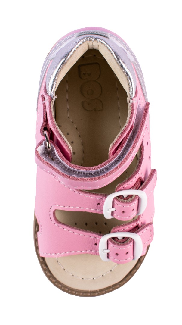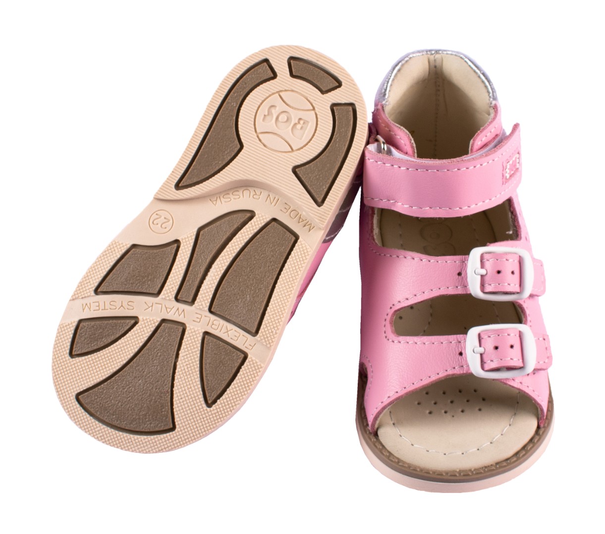 Ортопедические сандалии для профилактики и коррекции плоскостопия и плосковальгусной установки стоп. Широкий, устойчивый каблук специальной конфигурации - каблук Томаса. Каблук продлен с внутренней стороны до середины стопы, чтобы исключить заваливание стопы вовнутрь, так называемая косолапость, или вальгусная деформация. Анатомическая стелька с супинатором для правильного формирования свода стопы. Задник максимальной жесткости с удлиненным крылом надежно стабилизирует голеностопный сустав во время ходьбы. Упругая, умеренно-эластичная подошва, имеющая перекат, позволяет повторить естественное движение стопы при ходьбе для правильного распределения нагрузки на опорно-двигательный аппарат ребенка.