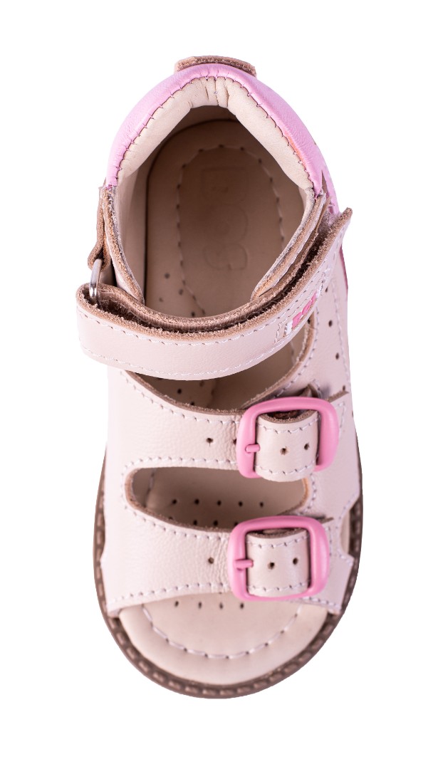 Ортопедические сандалии для профилактики и коррекции плоскостопия и плосковальгусной установки стоп. Широкий, устойчивый каблук специальной конфигурации - каблук Томаса. Каблук продлен с внутренней стороны до середины стопы, чтобы исключить заваливание стопы вовнутрь, так называемая косолапость, или вальгусная деформация. Анатомическая стелька с супинатором для правильного формирования свода стопы. Задник максимальной жесткости с удлиненным крылом надежно стабилизирует голеностопный сустав во время ходьбы. Упругая, умеренно-эластичная подошва, имеющая перекат, позволяет повторить естественное движение стопы при ходьбе для правильного распределения нагрузки на опорно-двигательный аппарат ребенка.