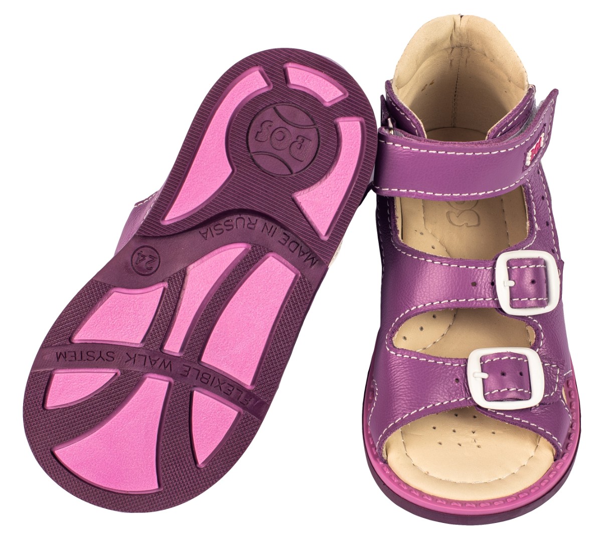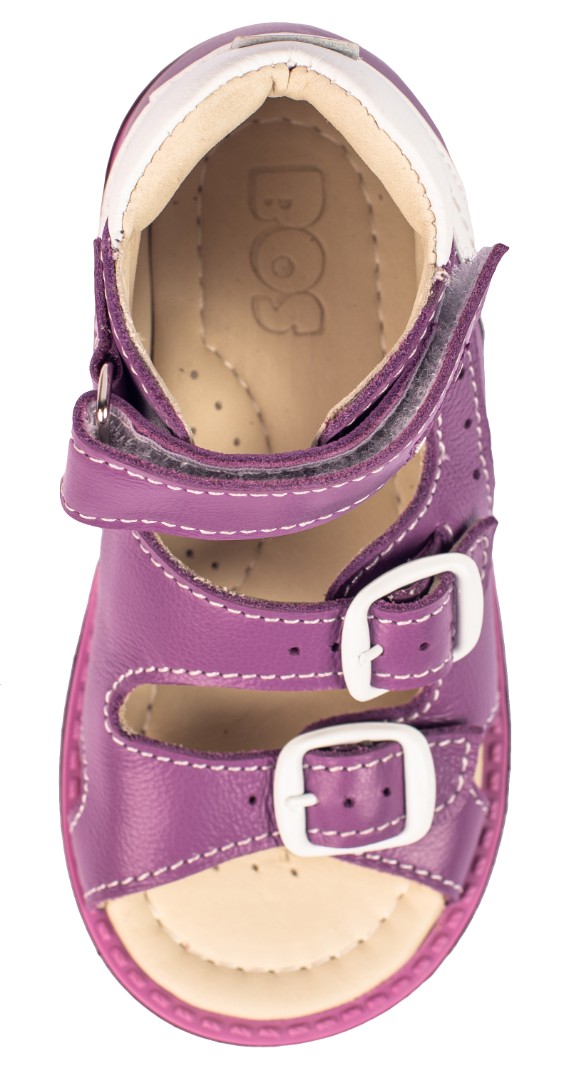 Ортопедические сандалии для профилактики и коррекции плоскостопия и плосковальгусной установки стоп. Широкий, устойчивый каблук специальной конфигурации - каблук Томаса. Каблук продлен с внутренней стороны до середины стопы, чтобы исключить заваливание стопы вовнутрь, так называемая косолапость, или вальгусная деформация. Анатомическая стелька с супинатором для правильного формирования свода стопы. Задник максимальной жесткости с удлиненным крылом надежно стабилизирует голеностопный сустав во время ходьбы. Упругая, умеренно-эластичная подошва, имеющая перекат, позволяет повторить естественное движение стопы при ходьбе для правильного распределения нагрузки на опорно-двигательный аппарат ребенка.